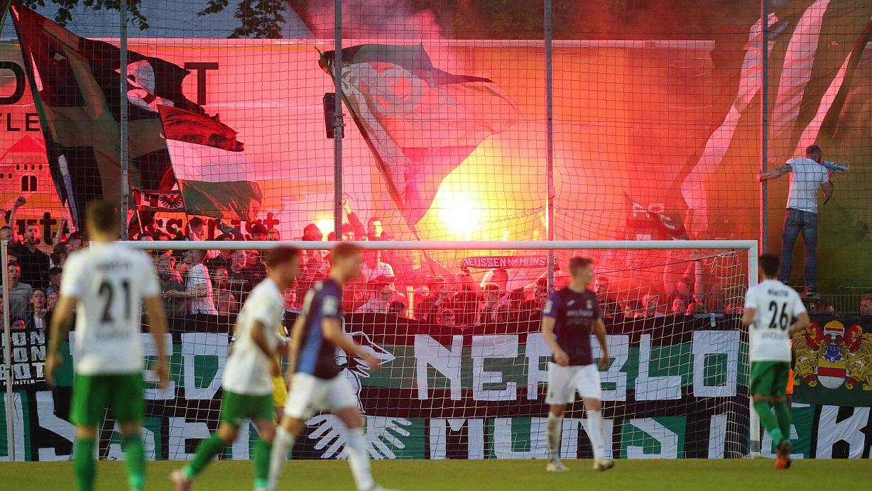 Die Fans vom SC Preußen Münster brannten beim 0:0 im Wiedenbrücker Jahnstadion ein größeres Feuerwerk ab als ihre Mannschaft auf dem Rasen. | © Daniel Bremehr