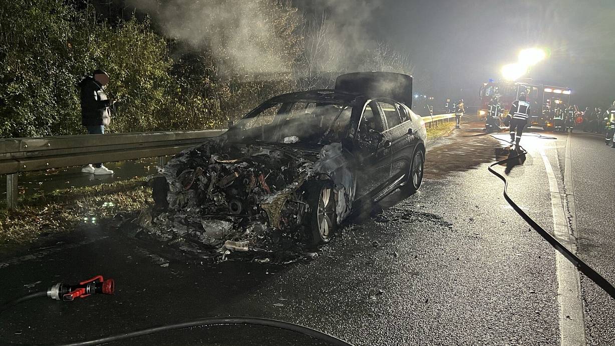 Auto brennt im Kreis Gütersloh komplett aus - Fahrer rettet sich rechtzeitig