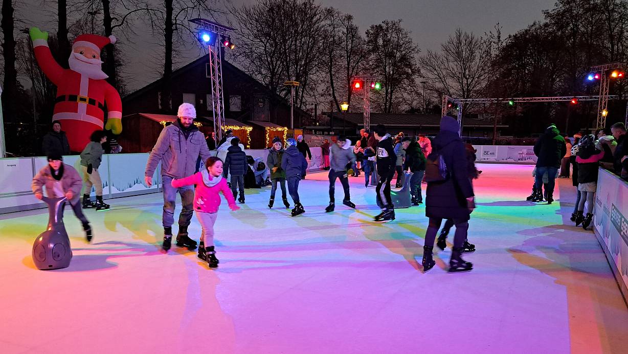 2014 hatte Illiges noch an eine „normale mit Eis“ gedacht. Heute „ist das nicht mehr zeitgemäß“ sagt der 40-Jährige angesichts des Klimawandels und der gestiegenen Energiekosten. Er fand die Firma Glice, vor zehn Jahren in Luzern als Start-up gegründet und seit sieben Jahren Weltmarktführer. Im Showroom in Berlin testete Illiges die Schlittschuhbahn aus Kunststoff - und landete drei Mal auf dem Hosenboden, „weil die sehr glatt ist, aber zum Glück nicht so nass und nicht so hart wie Eis“, sagt der 40-Jährige, der die Veranstaltung mit seiner Tochter Marie und seiner Ehefrau Draga stemmt.