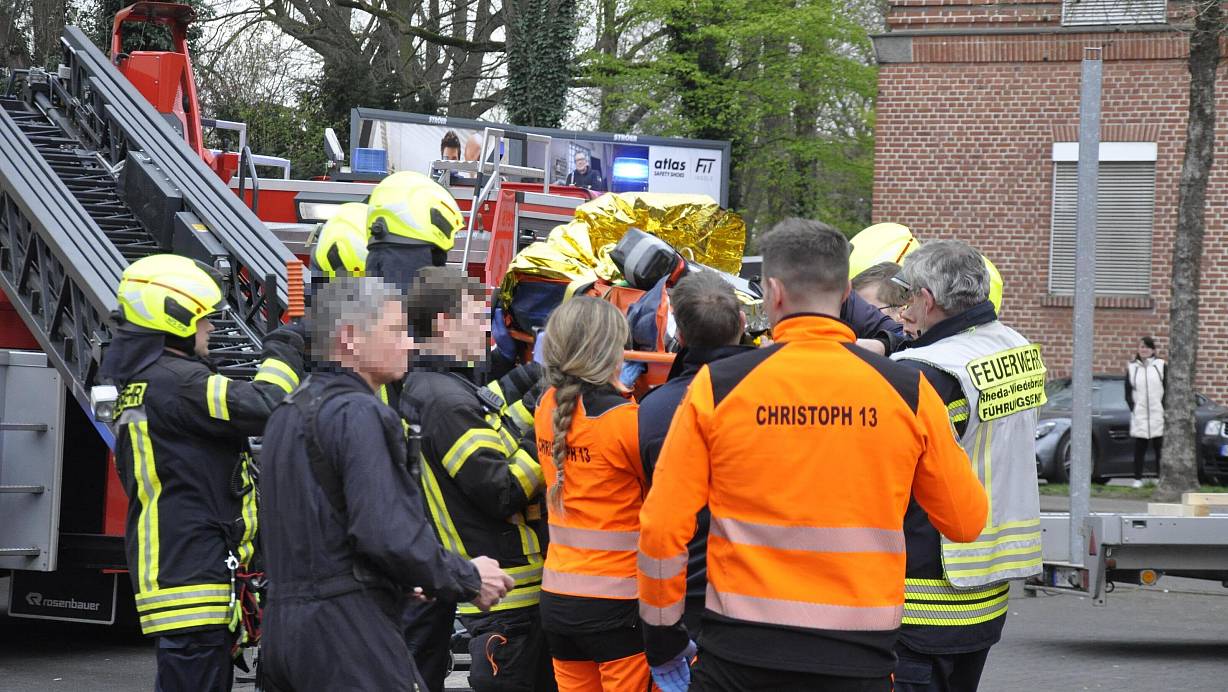 Bei einem Arbeitsunfall in Rheda-Wiedenbrück wird ein Mann an der Bielefelder Straße schwer verletzt. Rettungshubschrauber Christoph 13 wurde angefordert.
