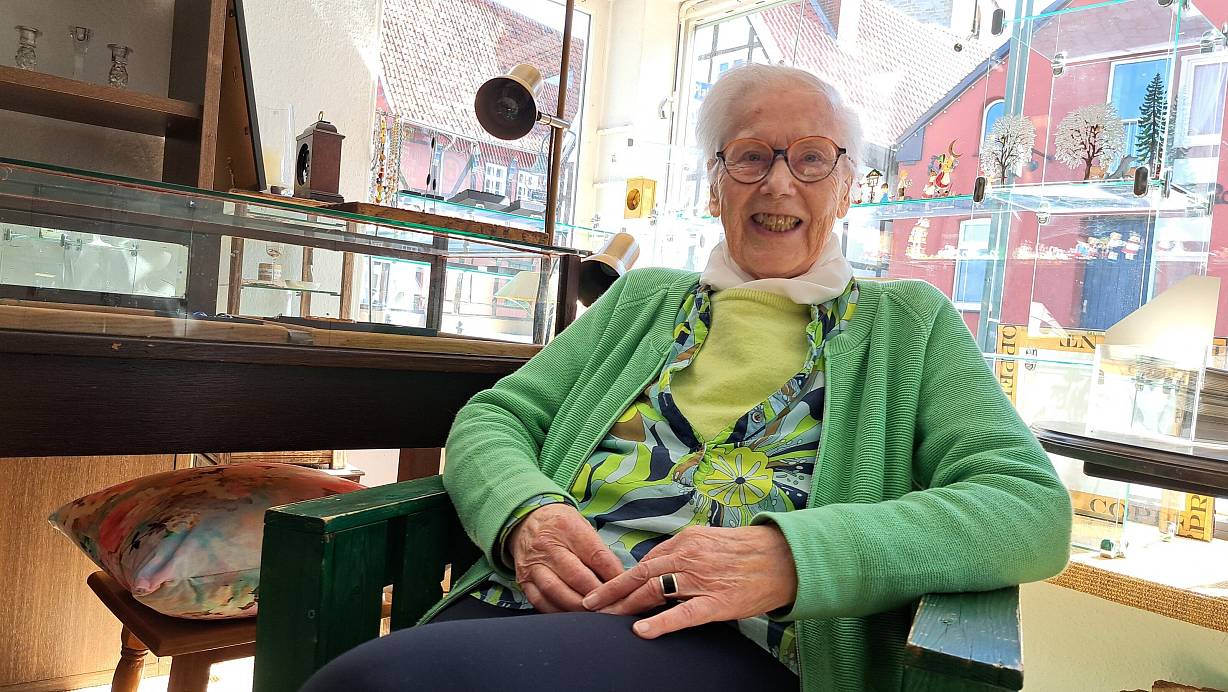 Cilly Hanhardt kommt täglich "mit größter Begeisterung" in ihr Geschäft im Kreis Gütersloh, wie die 90-Jährige betont. | © Marion Pokorra