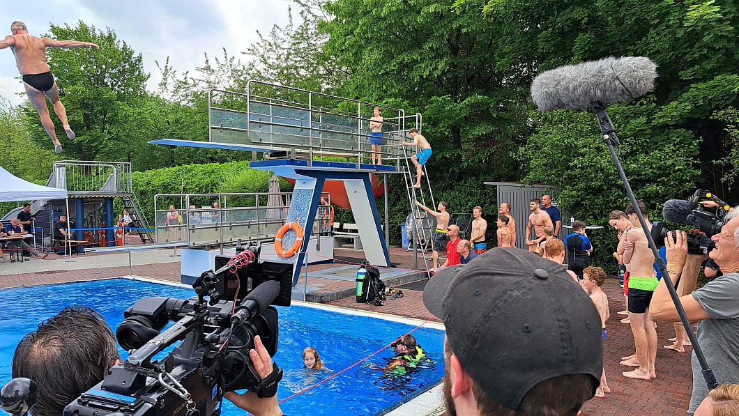 Hintergrund: Freibad-Sprungturm im Kreis Gütersloh vor dem Aus – sogar TV-Teams bei Rettungsaktion