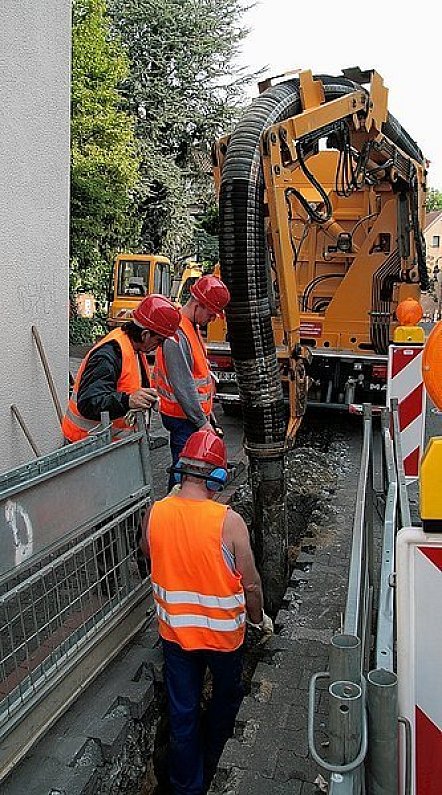 Das Besondere sei, dass der Saugbagger sehr schnell arbeite - "wenn der Aushub locker ist", so Schmidt. Für einen neuen Hausanschluss, von denen es in Wiedenbrück bei diesem Bauprojekt etwa 30 gibt, brauche das Gerät 20 Minuten. "Wenn wir das mit einem Bagger und per Hand bei hartem Boden machen, dauert das einen halben Tag", meint der Bauarbeiter Roland Micklich.