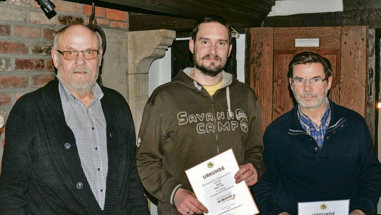 Doppelt geehrt wurde Heinz Horstkemper. Er konnte zum einem mit besonders gutem Honig punkten und erhielt daher den Wanderpokal der Honigbewertung. Eine weitere Ehrung wurde ihm mit der Verleihung der silbernen Ehrennadel für 25-jährige Mitgliedschaft in der Gemeinschaft zuteil. Die bronzene Ehrennadel nahm Mike Fiße für 15 Jahren Mitgliedschaf im Imkerverein Mastholte entgegen.
