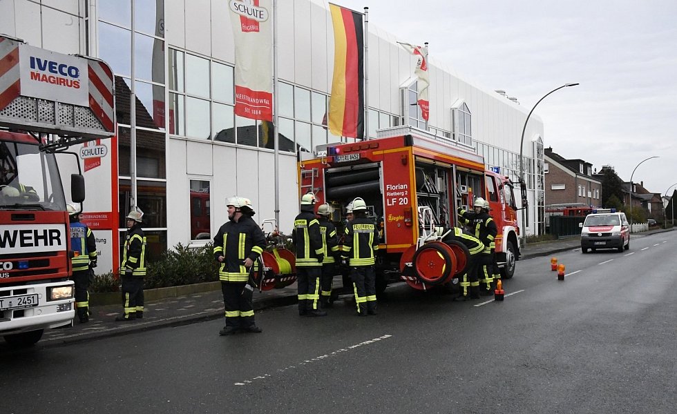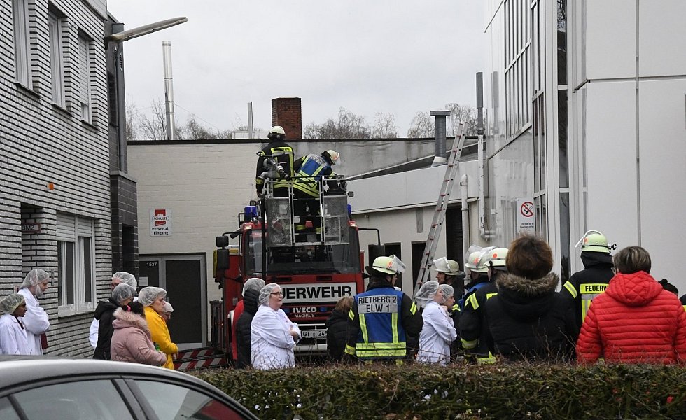 Als die ersten Einsatzkräfte an der Benteler Straße eintrafen, hatten die Mitarbeiter bereits alle ihren Arbeitsplatz verlassen. „Das hat hervorragend funktioniert", lobte Poll später. An der Brandstelle im Bereich der Bäckerei, die nahe der Straße verläuft, mussten Dank des Einsatzes der Mitarbeiter nur noch Nachlöscharbeiten durchgeführt werden. Vier Feuerwehrleute rüsteten sich aufgrund der starken Verqualmung mit Atemschutzgeräten aus. Sie konnten später melden, dass sich der Brand auf den primär betroffenen Bereich beschränkt hatte.