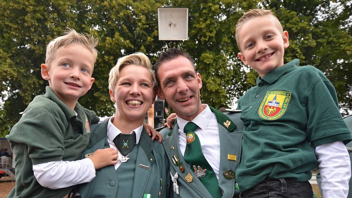 Zu den ersten Gratulanten der neuen Schützenkönigin Jeannette Theilmeier zählten die Söhne Nilkas (l.) und Leon (r.) und sowie