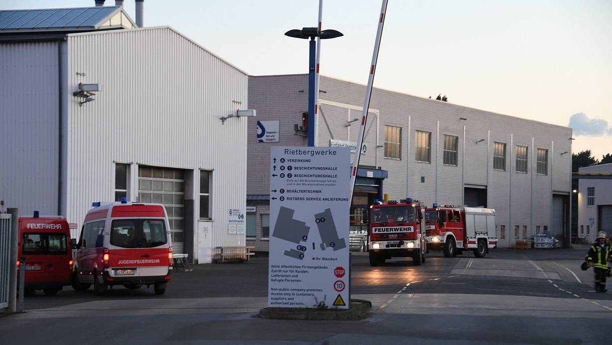 Schon wieder brennt es in einer Verzinkerei in Rietberg, diesmal bei den Rietbergwerken. Ein Stromabnehmer an einer Stromschiene für die Kranbahn war in Brand geraten.