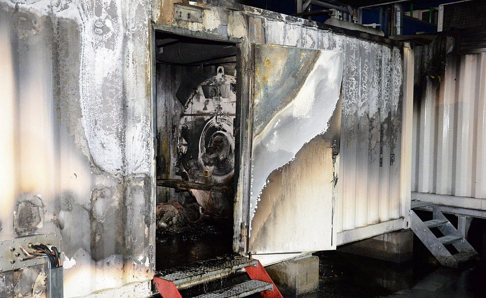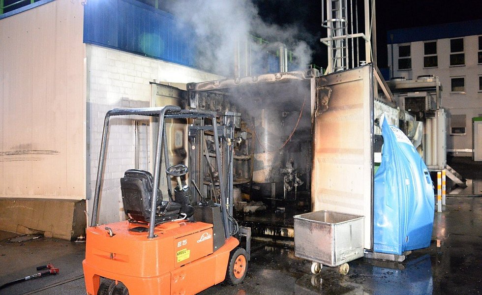 "In dem Container, der vor dem Gebäude positioniert ist, wird das im Produktionsprozess verwendete Backöl gesäubert und erhitzt, um es wieder zu verwenden", erläutert Hesse die Funktion der Anlage und ergänzt: „Der erste Löschangriff zeigte sofort Wirkung, der Brand konnte in dem Metallbehälter sofort weitestgehend eingedämmt werden."