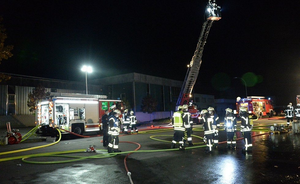 Beim Eintreffen der ersten Feuerwehrleute hatten die rund drei Dutzend Mitarbeiter die Räume bereits verlassen. Nachdem noch weitere Unterstützung eingetroffen war, wurde unter anderem ein Unterflurhydrant angezapft, um eine ausreichende Wasserversorgung sicherzustellen. Mithilfe der Drehleiter wurde der Innenhof des Unternehmens ausgeleuchtet.