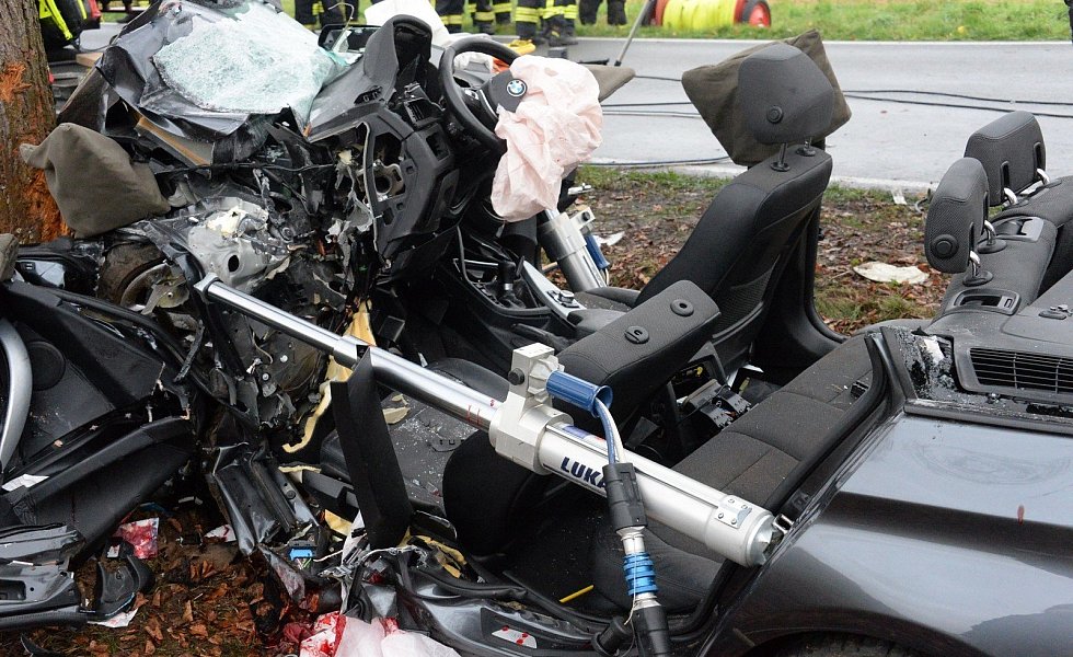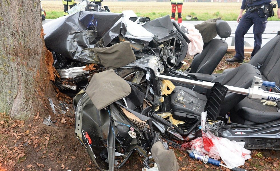 Der Wagen kam nach links von der Straße ab und prallte gegen einen massiven Baum. Der Fahrer und sein Beifahrer wurden in dem Wrack eingeklemmt und mussten von den Feuerwehrleuten befreit werden. Für einen Feuerwehrmann war der Anblick der beiden Schwerstverletzten so ergreifend, dass er sich zurückziehen musste.