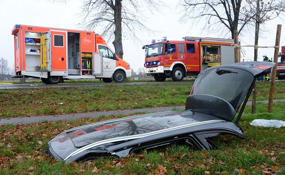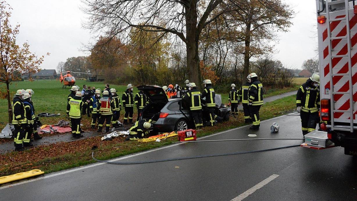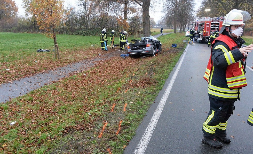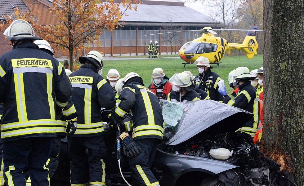 Rietberg-Mastholte. Mehr als 90 Minuten war am Sonntag ein 24-jähriger Rietberger in seinem verunfallten BMW eingeklemmt, nachdem er auf der Lippstädter Straße offenbar mit sehr hoher Geschwindigkeit gegen einen Baum geprallt war. Er und sein Beifahrer, ein 29 Jahre alter Mann aus Rietberg, mussten jeweils mit lebensgefährlichen Verletzungen in Spezialkliniken nach Bielefeld (Bethel) und Münster (Universität) geflogen werden.