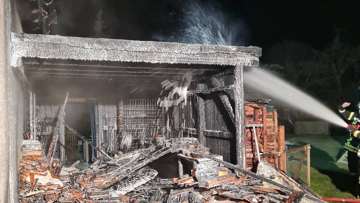 Parallel wurde eine Wasserversorgung aus dem Hydrantennetz aufgebaut, während die Drehleiter die Einsatzstelle ausleuchtete. Mit der Wärmebildkamera wurden die anliegenden Gebäudeteile kontrolliert; es zeigte sich schnell, dass diese nicht in Mitleidenschaft gezogen wurden. Der Carpot indes wurde komplett zerstört. Am Morgen kümmerten sich die Blauröcke noch um Nachlöscharbeiten.
