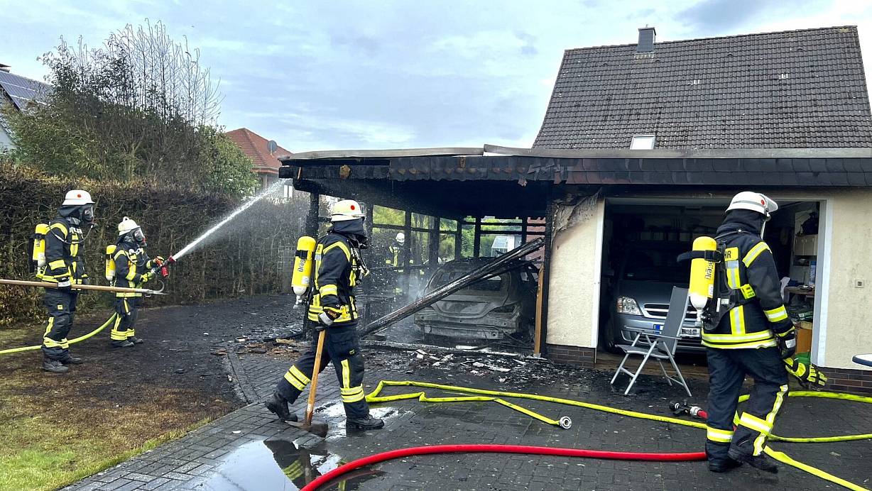 Großes Feuer im Kreis Gütersloh zerstört Carport und Mercedes