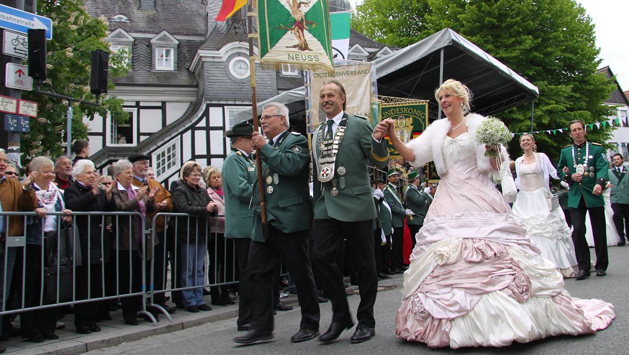 Zum Bundesköniginnentag 2010 zogen etliche Schützenpaare in einem mehr als zwei Stunden dauernden Festmarsch durch die historische Altstadt und den Gartenschaupark – begleitet von vielen Musikkapellen. | © Birgit Vredenburg