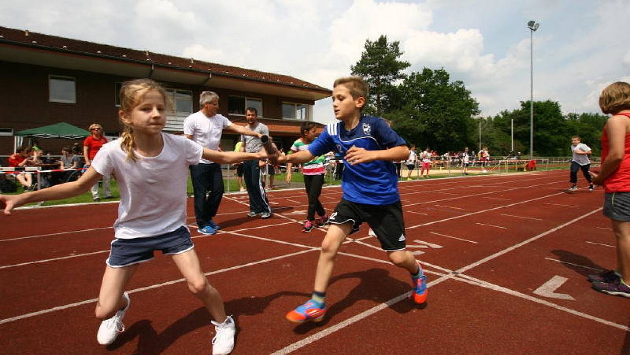 Dabei müssen die Schüler die benötigten Disziplinen bewältigen. Das sind Weitsprung, Hochsprung, 50 oder 100 Meter Sprint (je nach Alter), 800 Meter Laufen, Schlagballwurf und der Staffellauf. Der ist stets der Höhepunkt des Sportfestes, weil dabei die Klassen der Jahrgänge gegeneinander antreten. Das spornt an. Kugelstoßen haben die Schüler bereits im Unterricht gemeistert, das Schwimmen im Hallenbad.