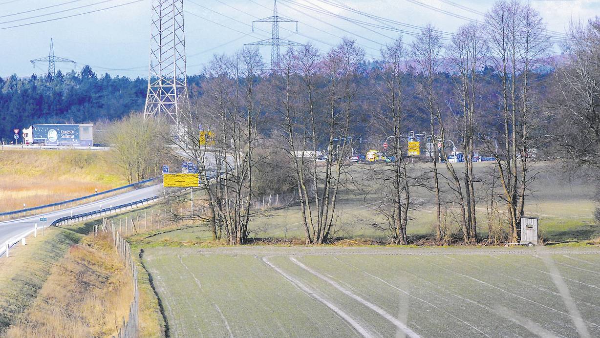 Hier will sich das Logistikunternehmen ansiedeln: Links im Bild ist die Autobahnabfahrt zur Oerlinghauser Straße zu sehen. Die Baumreihe markieren den Landerbach, dahinter ist die Kreuzung am Kreuzkrug zu erkennen. 15 Hektar Fläche benötigt das Unternehmen. | © Gunter Held