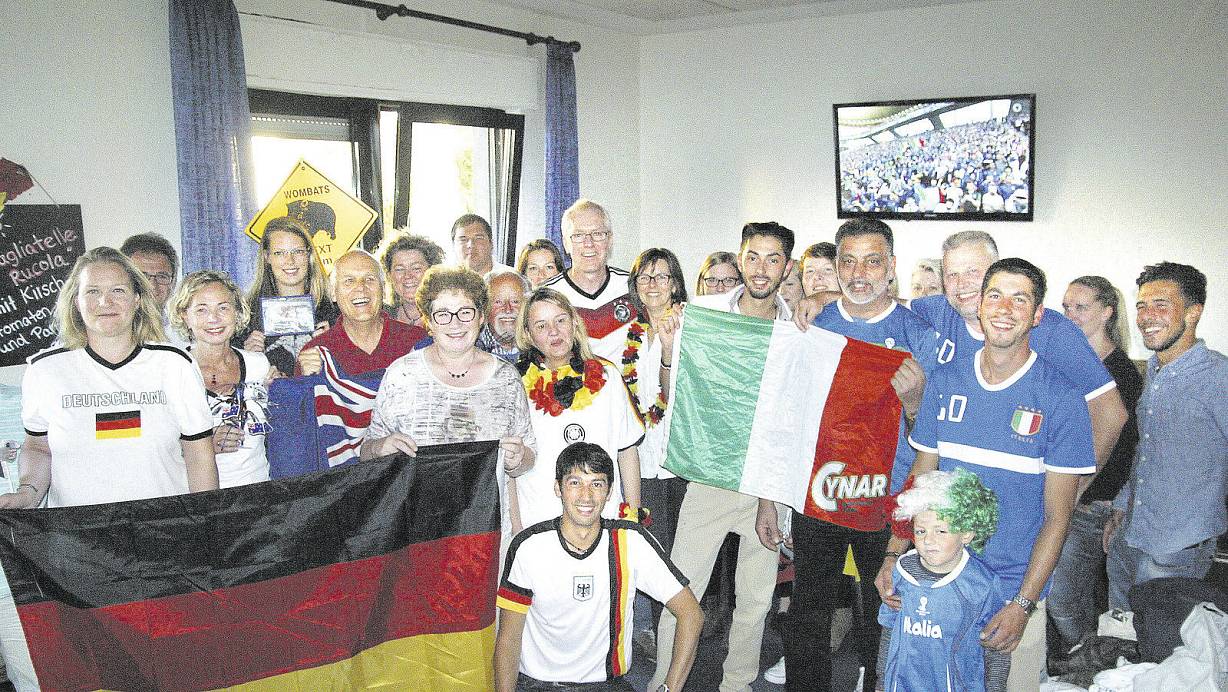 Da ergaben die Italien-Trikots noch Sinn: Während der Fußball-Europameisterschaft 2016 schauten Anhänger der deutschen und der italienischen Fußball-Nationalmannschaft gemeinsam das Viertelfinalspiel im Restaurant Calabria – mit dem besseren Ende für die deutschen Jungs. Für die WM hat sich Italien nicht qualifiziert. | © Demokrat Ramadani