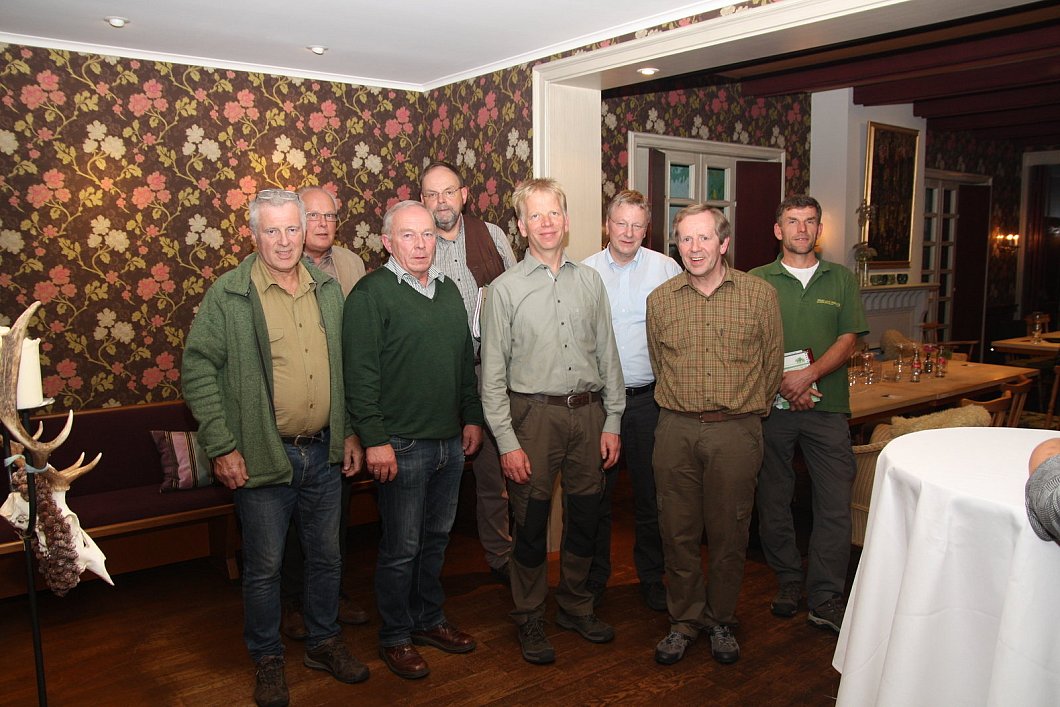 Peter Markett und Martin Fuhrlmeier, der das Projekt mitorganisiert hat, hatten sich bereits bei einer Begehung der Jagdreviere ein Bild von den geografischen Gegebenheiten gemacht. Peter Markett als beratender Berufsjäger erklärt vor den Jägern aus SHS und Hövelhof, wie eine Zusammenarbeit aussehen muss und warum sie wichtig ist. „Es geht um eine revierübergreifende Großraumjagd.“
