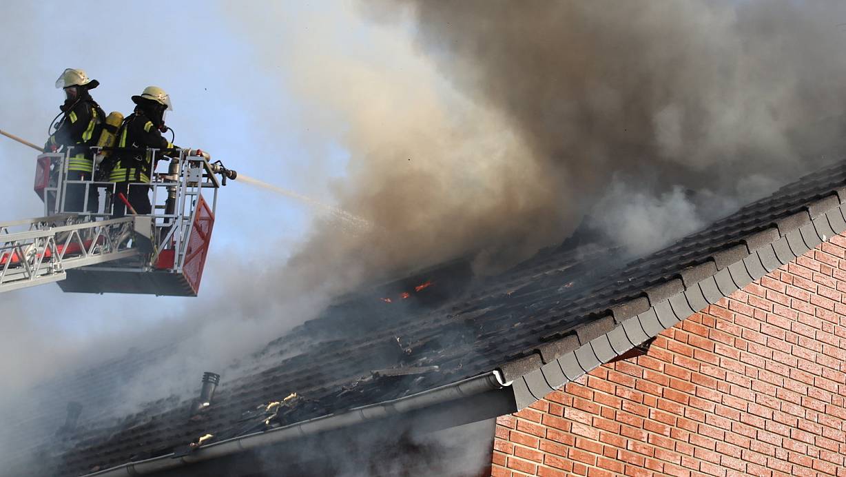 Am Umenweg in Stukenbrock brennt ein Haus. Die Leitstelle warnt vor Brandrauch. | © Sigurd Gringel