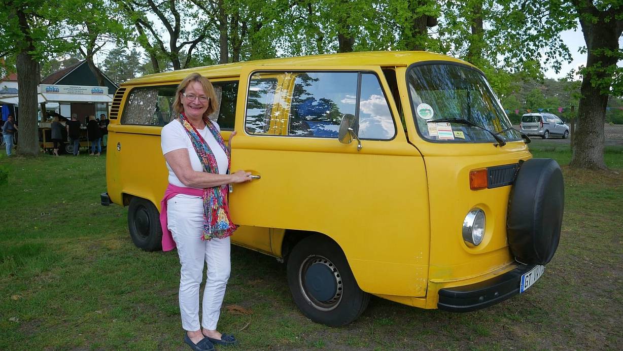 T2 von 1976: Campingplatz-Chefin Annette Auster-Müller mit dem Familienbulli. Im Herbst geht Ehemann Siegfried damit auf Reise. | © Kristoffer Fillies