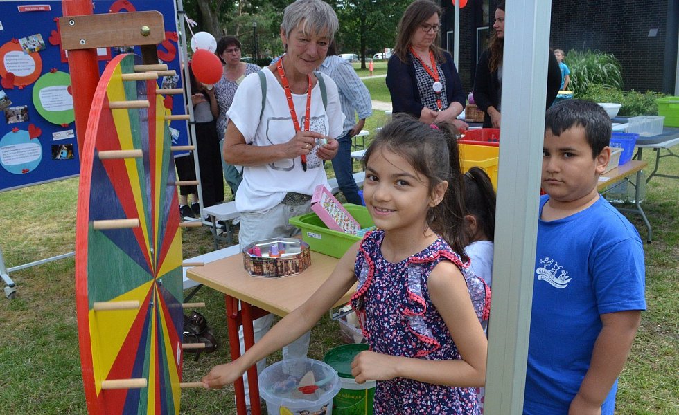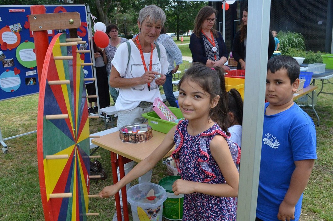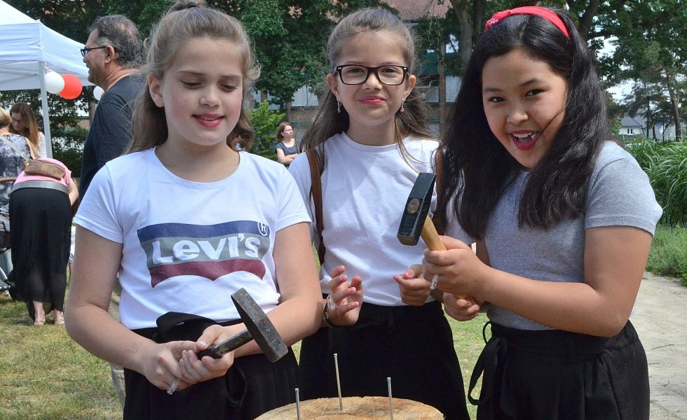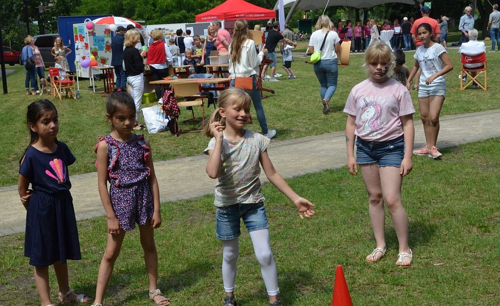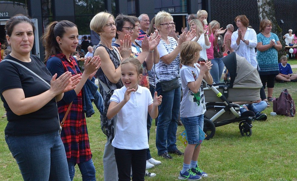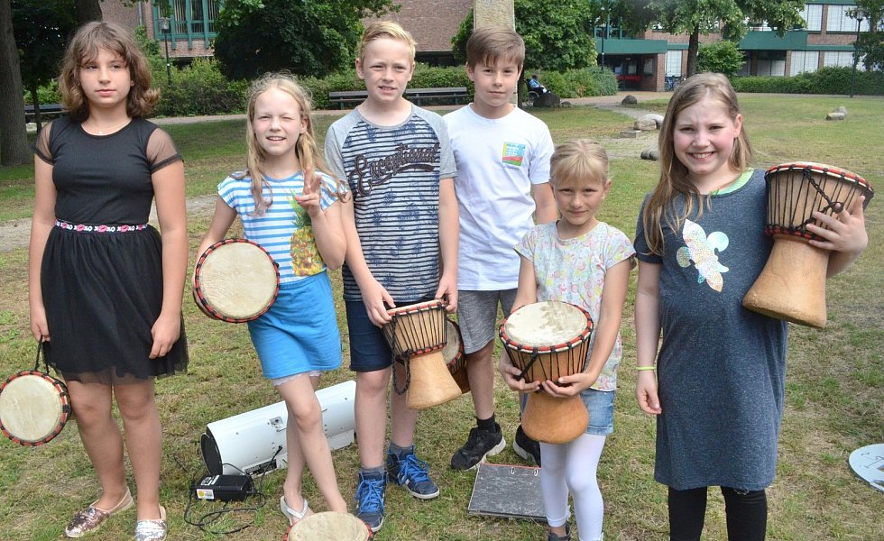 Auf der Bühne unter dem großen Sonnensegel erfreuten die Trommler der Michael- und der Pollhansschule die Besucher. Hingucker waren auch die spektakulären Sprünge der Rope Skipper von der Turngemeinschaft Sende und die Tänze der „Dancing Dolls“ von der Tanz-Arbeitsgruppe der Gesamtschule SHS.