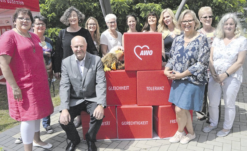 1919, vor 100 Jahren, war der Erste Weltkrieg gerade beendet. Die Menschen litten Not und Hunger, erzählte Ulrike Boden, AWO-Vorsitzende im Kreis Gütersloh, in ihrer Rede. Das gab für Marie Juchacz den Anstoß, einen Hauptausschuss für Arbeiterwohlfahrt in der SPD der Nationalversammlung zu gründen. „Wir blicken mit Stolz zurück auf 100 Jahre Einsatz für Solidarität, Freiheit, Gleichheit, Gerechtigkeit und Toleranz“, sagte Boden. Doch noch immer werde die AWO dringend gebraucht. „Dass in einem so reichen Kreis wie Gütersloh die Kinderarmut bei 16 Prozent liegt, sollte uns zu denken geben.“