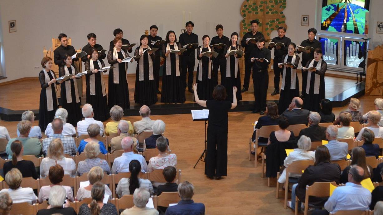 Unter der zurückhaltenden, aber präzisen Leitung von Dirigentin Sun-Ah Kim brachten sie die Reinheit und Schönheit der Musik und gleichzeitig die gehaltvollen Texte zur Wirkung. Einfühlsam und zurückhaltend begleitete Hee-Young-Chae den Chor an der Orgel. Sie sind alle Profisänger und selbstbewusste Solisten, doch im Chor sind sie Teil der großen Klangfülle, bieten trotz großer Präzision ein warmes, mitreißendes Klangbild. Obwohl ihnen das Deutsche fremd ist, sind die Koreaner in der Lage, die deutschen Texte verständlich zu artikulieren und die bewegenden Werke der großen Komponisten gefühlvoll auszudrücken.