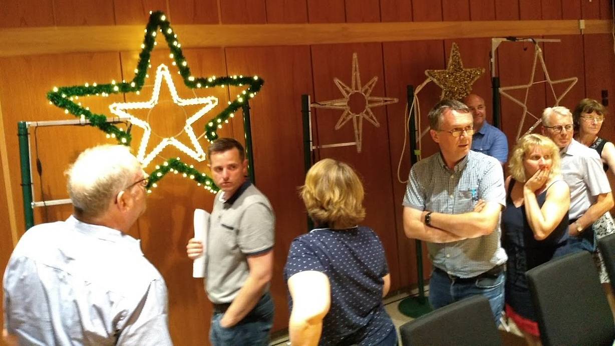 Begutachtet: Mitglieder des Fachausschusses schauen sich Weihnachtsstern-Modelle an. Mit der Entscheidung können sie sich noch Zeit lassen. | © Sigurd Gringel