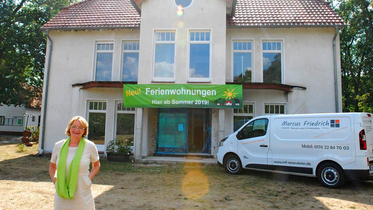 Wird aus dem Dornröschenschlaf gerissen: Annette Auster-Müller hat das repräsentative Haus am Eingang des Campingplatzes Am Furlbach innen ausgebaut. | © Gunter Held
