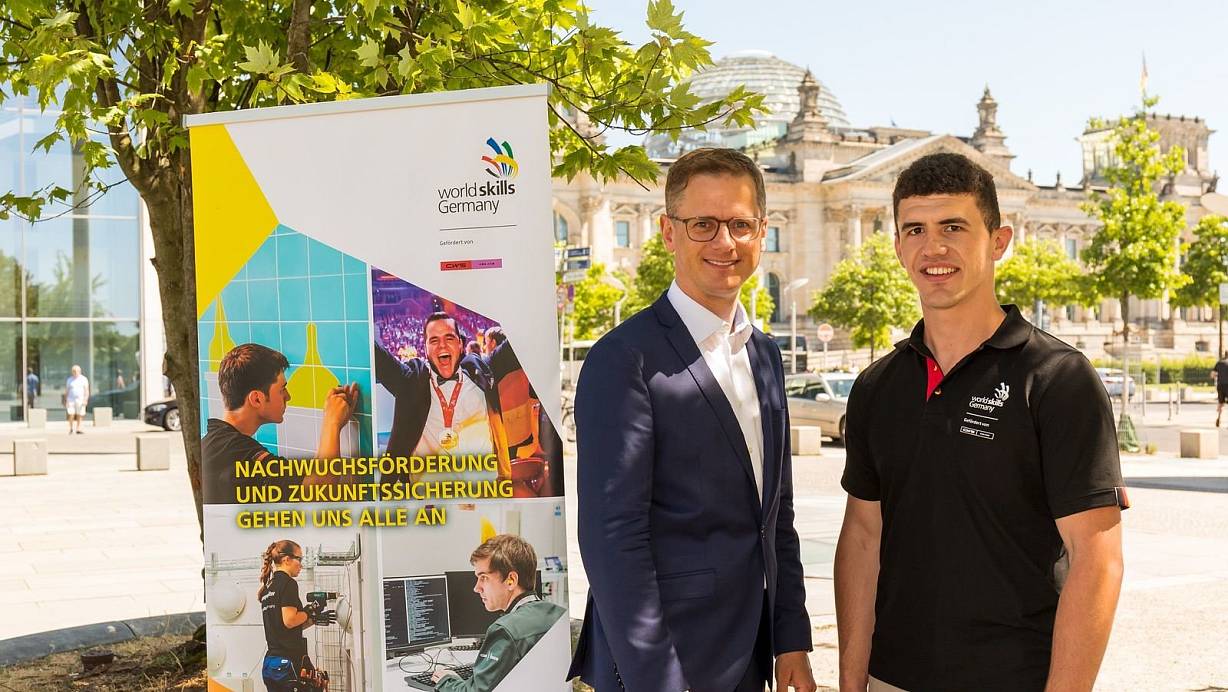 Schloß Holte-Stukenbrock (nw). Kommt der nächste Weltmeister im CNC-Drehen aus Schloß Holte-Stukenbrock? Simon Pankratz vertritt Deutschland bei den „WorldSkills“, den Weltmeisterschaften der Berufe im russischen Kasan. Bei seinen Vorbereitungen in Berlin traf er den heimischen Bundestagsabgeordneten Carsten Linnemann (CDU), der dem jungen Mann die Daumen drückt.