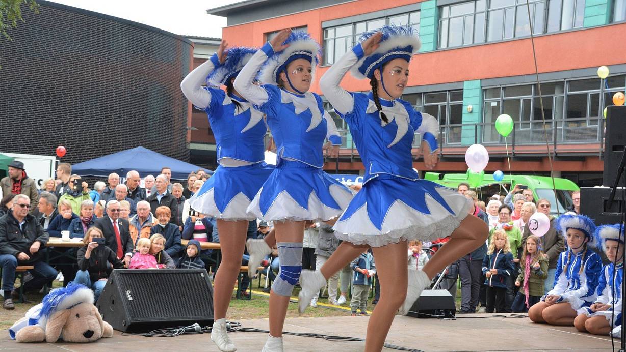 Tanz: Drei unterschiedliche Formationen des Stukenbrocker Karnevalsvereins (SKV) präsentieren sich auf der großen Bühne zwischen Rathaus und Gymnasium. Hier begeistern die erfahrenen Tänzerinnen Celina Bröckling, Chiara Kassen und Michele Carnin als Formation "Just for Fun". | © Karin Prignitz
