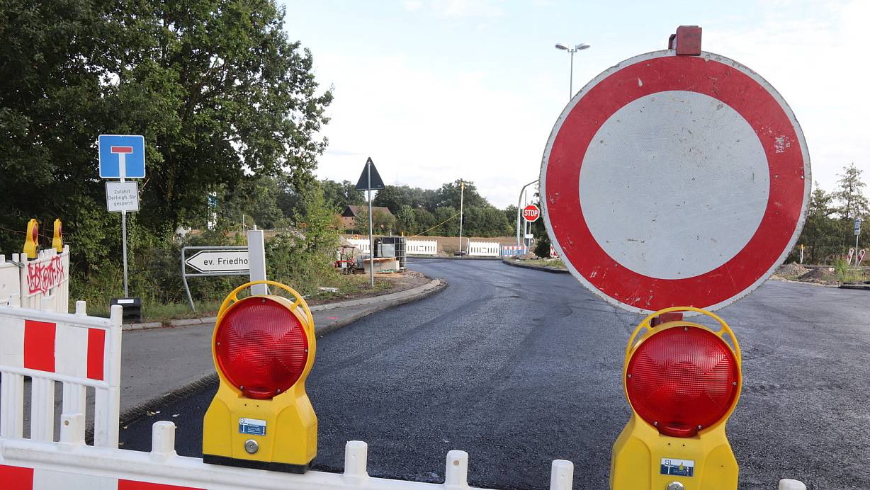 Kein Durchkommen: Wenn alles nach Plan läuft, soll die Einmündung Falkenstraße am Mittwoch wieder befahrbar sein. | © Sigurd Gringel