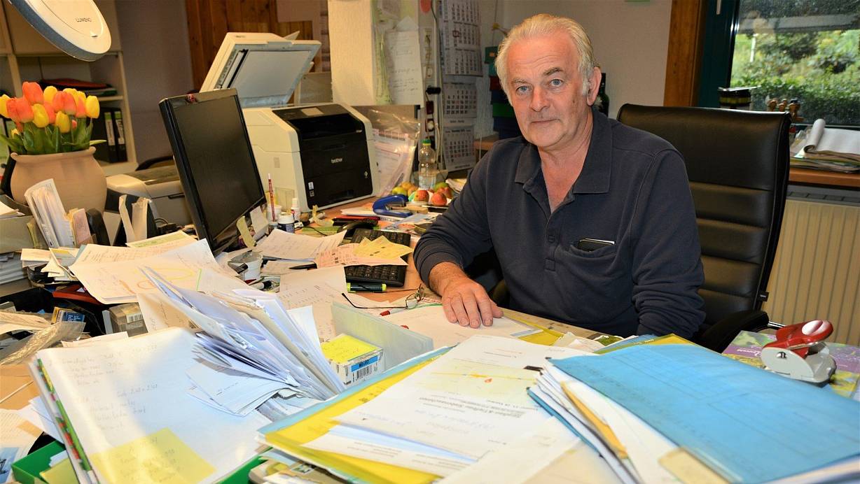 Hat viel zu tun: Manfred Jürgenliemke weiß trotz der vielen Stapel genau, wo die einzelnen Vorgänge liegen. | © Karin Prignitz