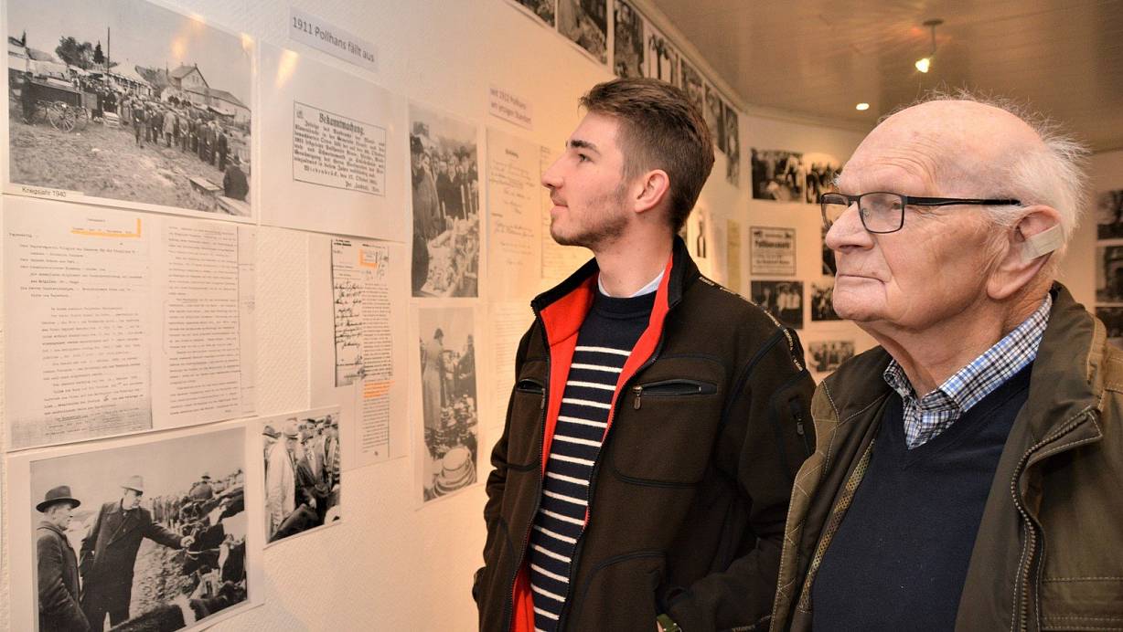 Erinnerung: Aurel Eichberg (21) und sein Großvater Werner Dresselhaus haben unter den vielen Bildern eines gefunden, auf dem die Gaststätte Dresselhaus-Brockmann während des Pollhansmarktes im Kriegsjahr 1940 zu sehen ist. | © Karin Prignitz