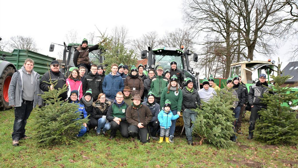 Mit etlichen Treckergespannen sind die Liemker Jungschützen unterwegs gewesen, um Weihnachtsbäume einzusammeln. Matthias Bremehr und sein Stellvertreter Dennis Gerhard (v. l.) haben auf insgesamt fast 50 Helfer zählen können. | © Karin Prignitz