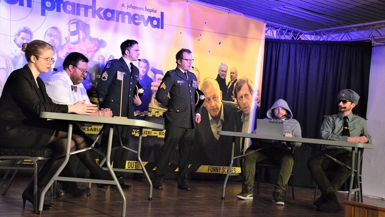 Beim 43. Pfarrkarneval in Stukenbrock tummeln sich fernsehbekannte Ermittler, flüchtige Bösewichte und die CSI Möckeland im vollen Saal. Ein mörderischer Spaß.