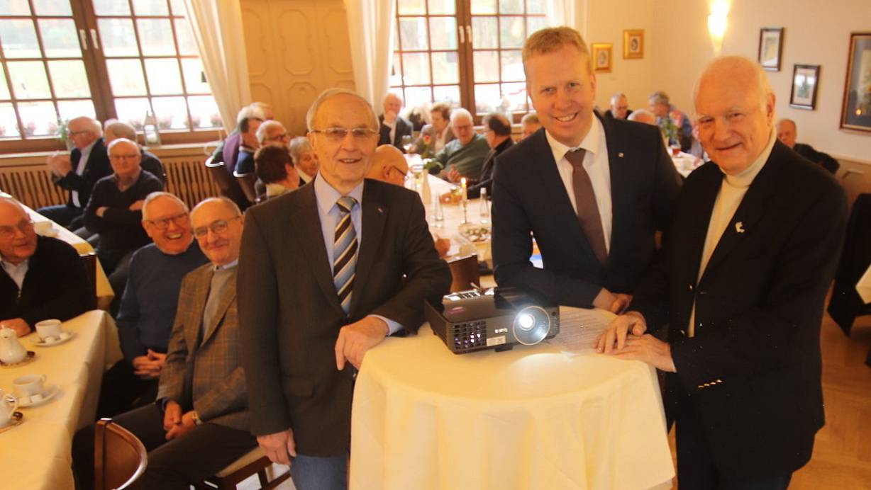 Mitglieder und Freunde der Senioren-Union haben sich im Saal des Holter Schloßkruges eingefunden, um den Vortrag des CDU-Landtagsabgeordneten Henning Rehbaum (Mitte) zu hören. Den Vorsitzenden Siegfried Kosubek (l.) und seinen Stellvertreter Klaus Streck freut’s. | © Sabine Kubendorff