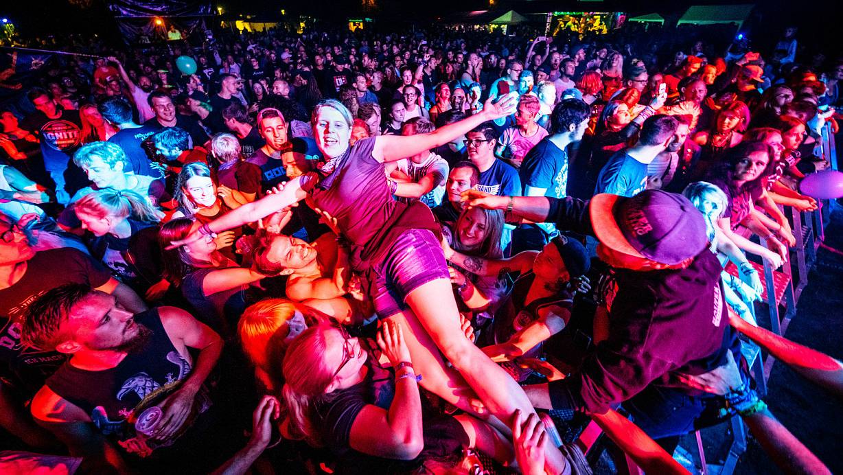 So ausgelassen badete eine junge Frau 2019 in der Menge vor der Festivalbühne. | © BESIM MAZHIQI