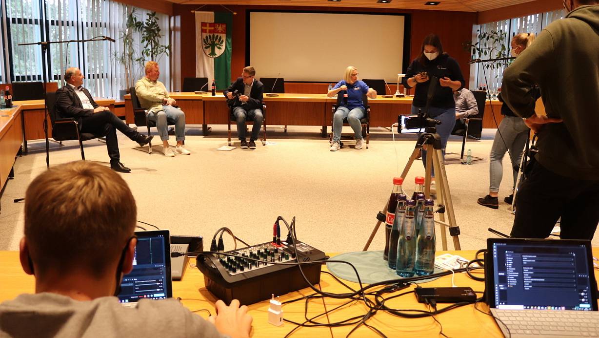 Mit dem Einsatz von Technik wollen die Jugendlichen die Diskussion live übertragen. Das scheitert zwar, dennoch zeichnen sie die 90-minütige Debatte auf. Sie wird als Video zu sehen sein. | © Sigurd Gringel