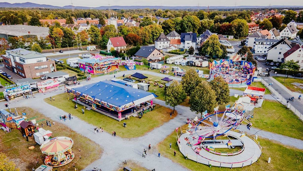 Der Pop-Up-Freizeitpark auf dem Pollhansplatz in Schloß Holte-Stukenbrock von oben gesehen. | © Besim Mazhiqi