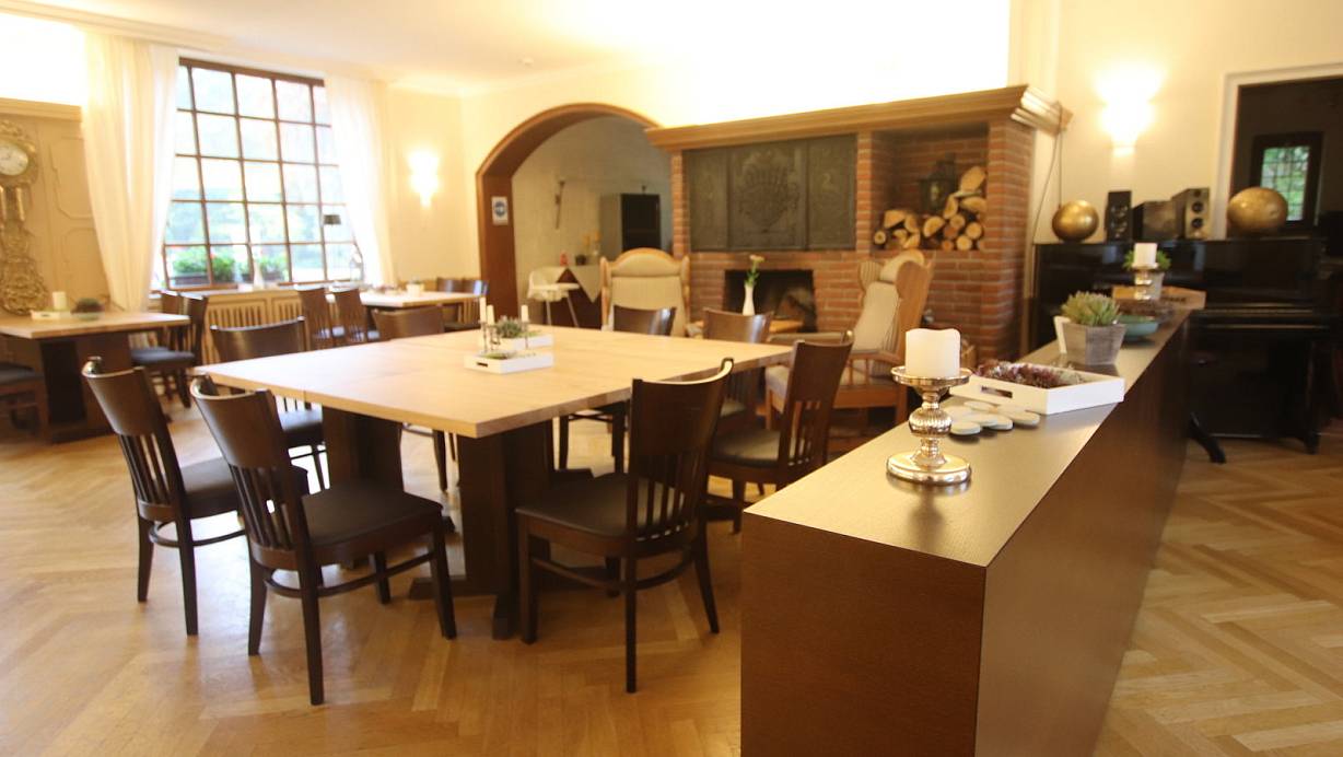 Facelifting für den Holter Schloßkrug: Das Kaminzimmer (oben) ist schon fertig und mit traditionellen Wirtshaustischen ausgestattet. | © Sabine Kubendorff