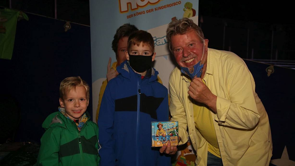 Während es am Finaltag draußen kräftig regnet, warten im Zirkuszelt rund 100 Zuschauer gespannt auf den Auftritt von Volker Rosin. Von der ersten Sekunde an bringt der als König der Kinderdisco bekannte Sänger seine kleinen Fans in Schwung.