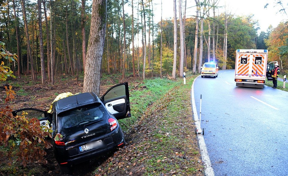 Schloß Holte-Stukenbrock. Eine Autofahrerin wurde am Donnerstagmorgen bei einem Autounfall auf der Holter Straße schwer verletzt. Die Frau war nach ersten Erkenntnissen der Polizei mit ihrem schwarzen Renault Twingo in einer Rechtskurve kurz vor der Einmündung Schloßstraße nach links von der Fahrbahn abgekommen und vor einen Baum geprallt.