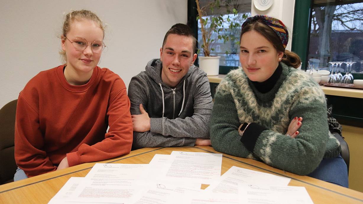 Die Jugendlichen rufen zu einem Upcycling-Wettbewerb auf. Jennifer Kleinemas, Franka Fockel und Henri Lindner kandidieren bei der Neuwahl im Sommer nicht mehr.