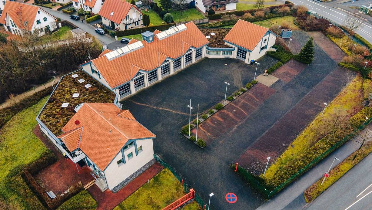 Das Feuerwehrgerätehaus in Stukenbrock wird an der rechten Flanke um eine Fahrzeughalle erweitert. | © Besim Mazhiqi