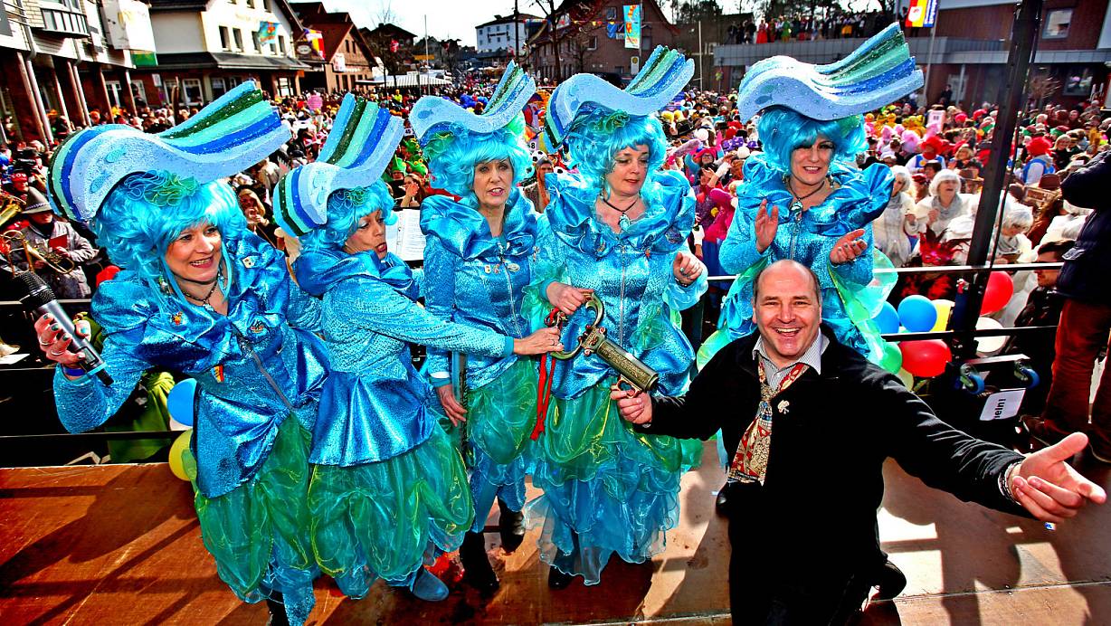 Weiberfastnacht 2015 in Stukenbrock: Das Fünfgestirn und der Bürgermeister. | © Sarah Jonek