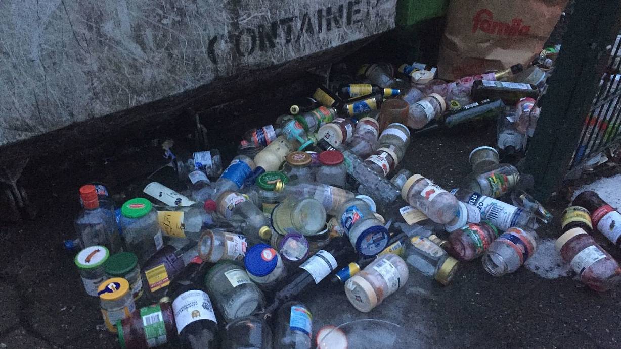 Die Container sind voll, das Glas wird einfach davor gekippt.