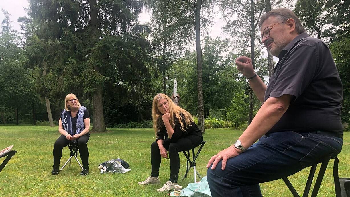 Regelmäßig kommen auch Elisabeth Montag, frühere Caritas-Geschäftsführerin, und Birgit Wiese zu den Meditationen. Sie alle erzählen hier heute von ihren eigenen Familiengeschichten – wie es auch die Besucher einer künftigen Gedenkstätte unweigerlich tun oder Fragen dazu stellen werden, dessen sind sie sich sicher. Elisabeth Montag ist es allerdings wichtig, dass nicht nur zurück-, sondern auch nach vorn geblickt wird. „Es geht um Zukunftsorientierung und Konfliktlösung.“ Ein Erinnerungsort weist den Weg in diese Zukunft. „Viele sagen: Wir können es nicht mehr hören. Doch wir können ja unser Wissen nicht in Kisten packen und dann ist es weg. Wunden, Verletzungen geben die Generationen einander weiter.“ Es gibt Angehörige, frische Blumen zeigen dies. Heilung könne nur langsam geschehen, ergänzt ihre Schwester Susanne. Birgit Wiese stimmt zu: „Wenn man die Stille auf sich einwirken lässt, ist ja zu spüren: Hier sind viele begraben.“ Dass diesen Empfindungen ein Platz in der neuen Gedenkstätte gewährt werde – das ist ihr Ziel.