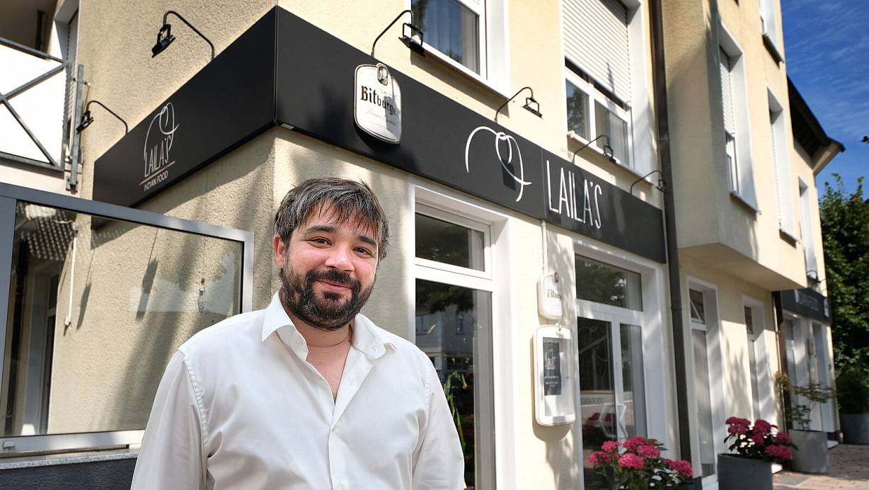 Inhaber Hashim Haider eröffnet am Samstag, 14. August, ein neues indisches Restaurant in Schloß Holte-Stukenbrock. Schriftzug und Logo des "Laila's" sollen von der Holter Straße aus gerade für vorbeifahrende Autofahrer gut sichtbar sein. | © Andreas Frücht