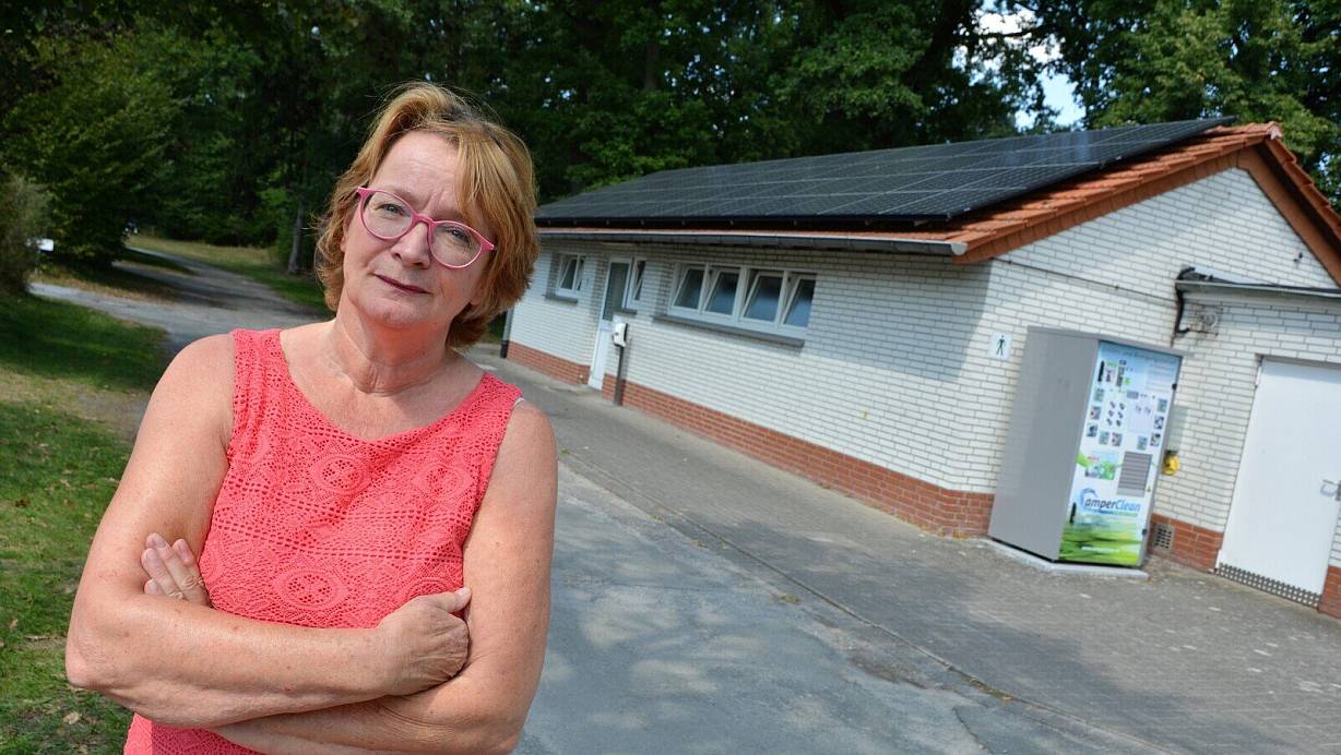 Annette Auster-Müller ärgert sich, dass sie im Sinne des Klimaschutzes investiert hat, die neue Anlage aber derzeit gar nicht nutzen kann, weil ein wichtiges Teil fehlt. | © Karin Prignitz